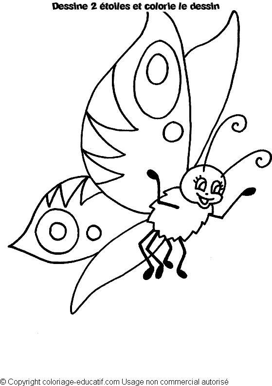 ![]() L’enfant doit dessiner deux étoiles et ensuite colorier le papillon. Dans cet exercice, il apprend le nombre 2, fait du dessin et du coloriage |