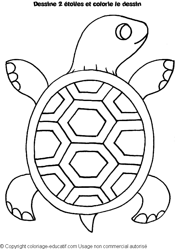 L’enfant doit dessiner deux étoiles et ensuite colorier la tortue.