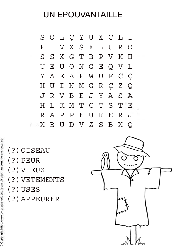 ![]() Retrouve les mots cachés dans la grille et colorie ! oiseau peur vieux vetements uses appeurer |