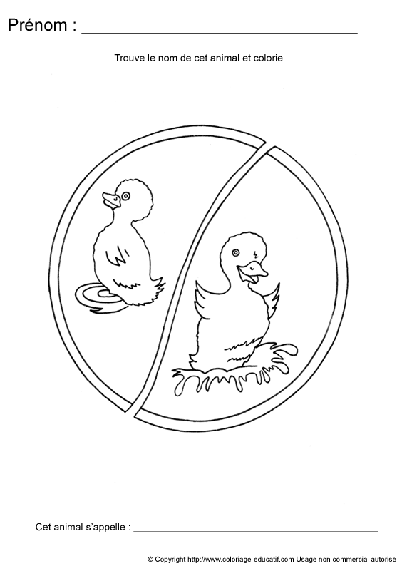 L'enfant doit découvrir de quel animal il s'agit et écrire son nom en dessous de l'image.