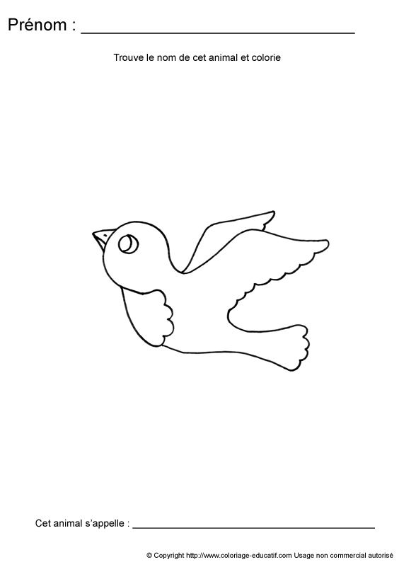 L'enfant doit découvrir de quel animal il s'agit et écrire son nom en dessous de l'image.