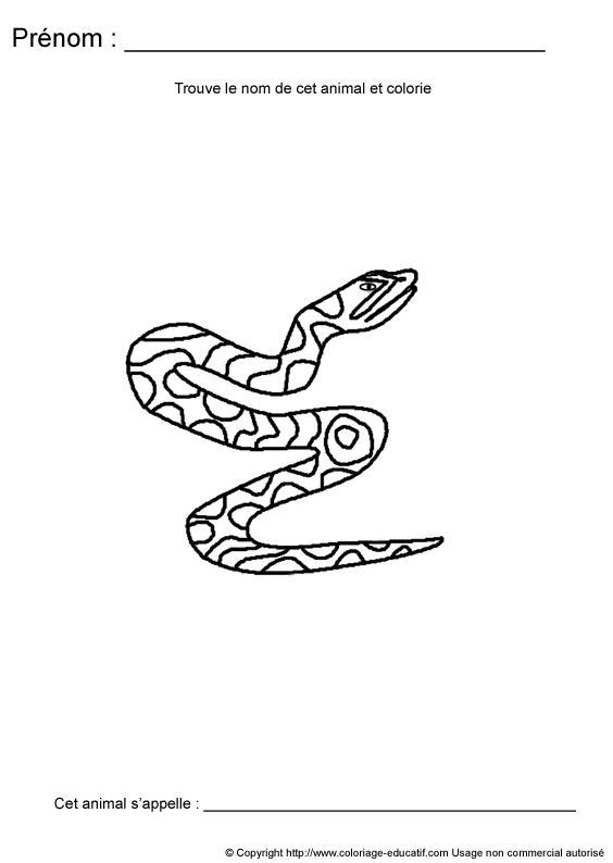 L'enfant doit découvrir de quel animal il s'agit et écrire son nom en dessous de l'image.