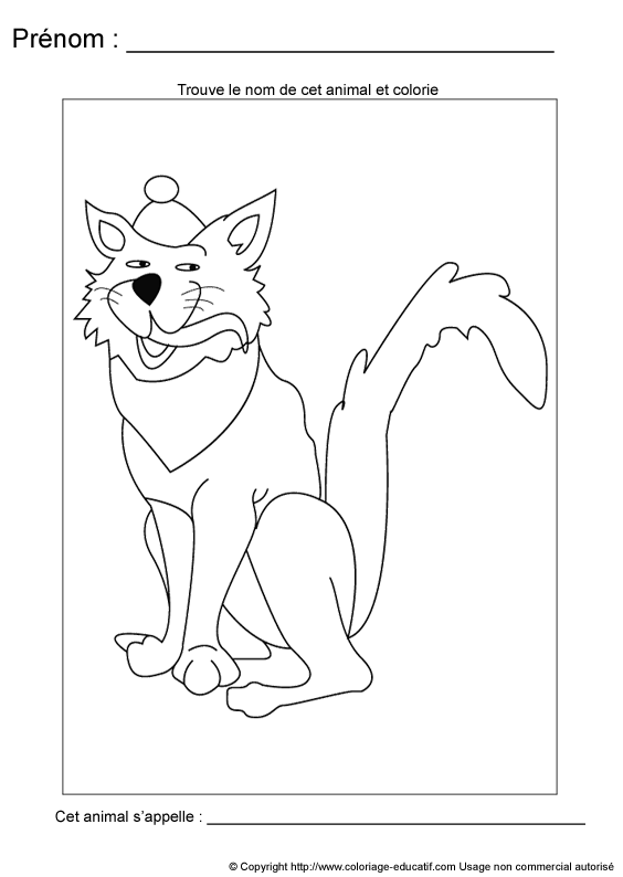 L'enfant doit découvrir de quel animal il s'agit et écrire son nom en dessous de l'image.