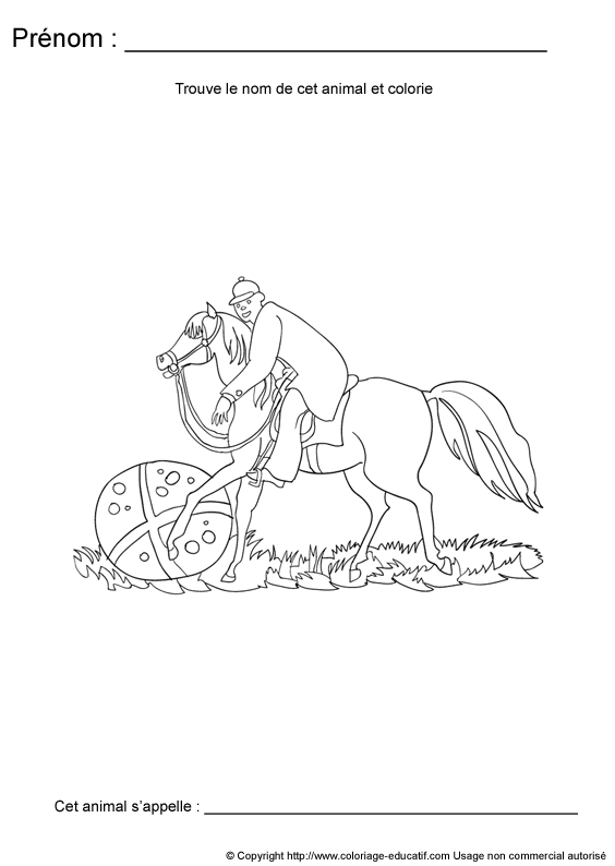 L'enfant doit découvrir de quel animal il s'agit e t écrire son nom en dessous de l'image.