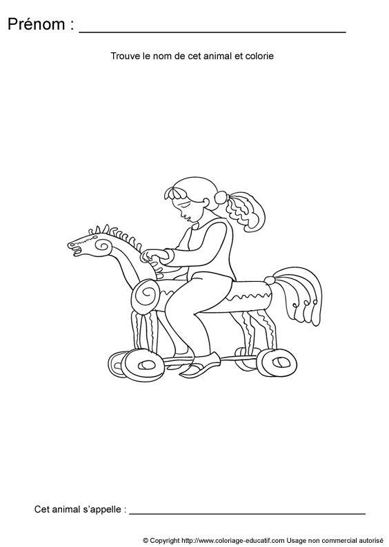 L'enfant doit découvrir de quel animal il s'agit e t écrire son nom en dessous de l'image.