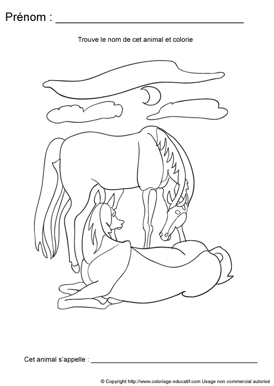 L'enfant doit découvrir de quel animal il s'agit e t écrire son nom en dessous de l'image.