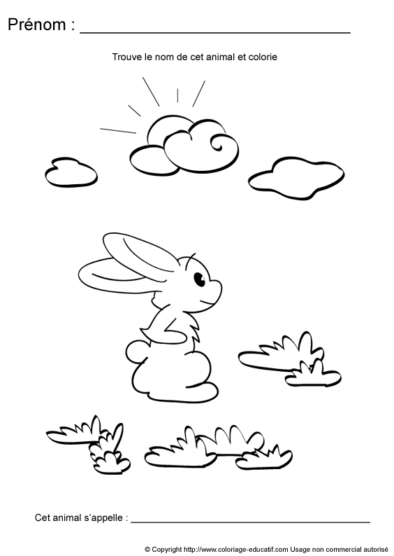 L'enfant doit découvrir de quel animal il s'agit e t écrire son nom en dessous de l'image.
