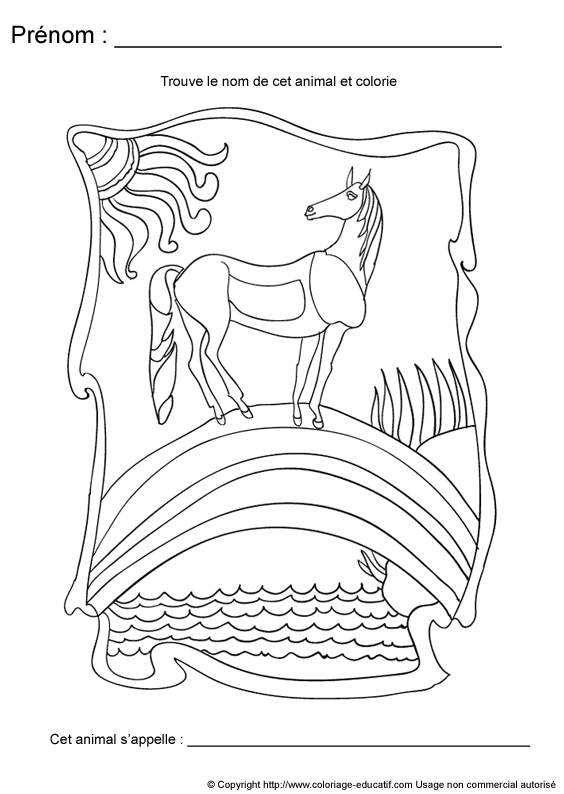 L'enfant doit découvrir de quel animal il s'agit e t écrire son nom en dessous de l'image.