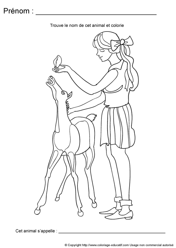 L'enfant doit découvrir de quel animal il s'agit e t écrire son nom en dessous de l'image.
