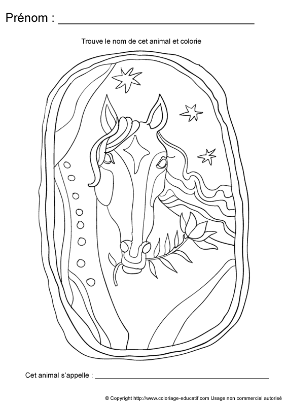 L'enfant doit découvrir de quel animal il s'agit e t écrire son nom en dessous de l'image.