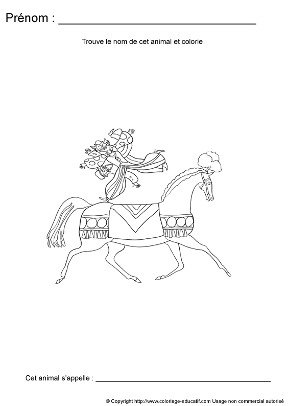L'enfant doit découvrir de quel animal il s'agit e t écrire son nom en dessous de l'image.
