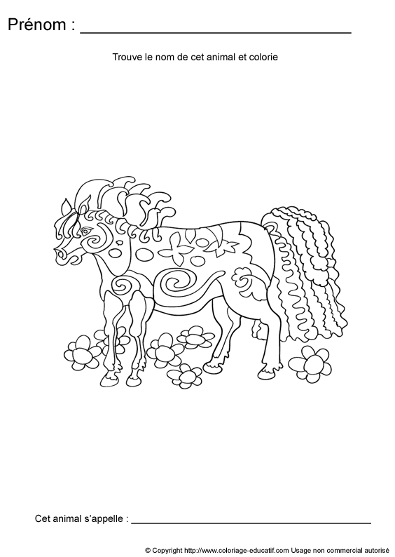 L'enfant doit découvrir de quel animal il s'agit e t écrire son nom en dessous de l'image.