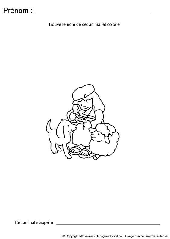L'enfant doit découvrir de quel animal il s'agit et écrire son nom en dessous de l'image.