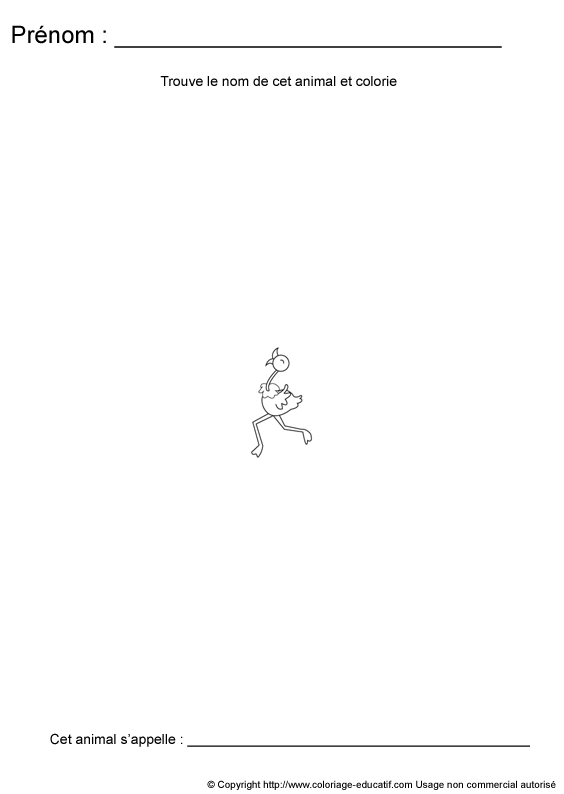 L'enfant doit découvrir de quel animal il s'agit et écrire son nom en dessous de l'image.