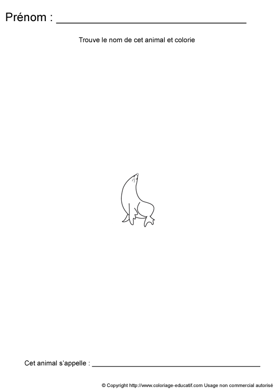 L'enfant doit découvrir de quel animal il s'agit et écrire son nom en dessous de l'image.
