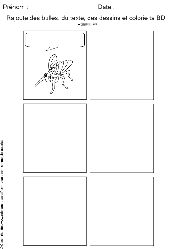 L'enfant devra rajouter les images, les bulles et les textes qui manquent afin de compléter la petite histoire.