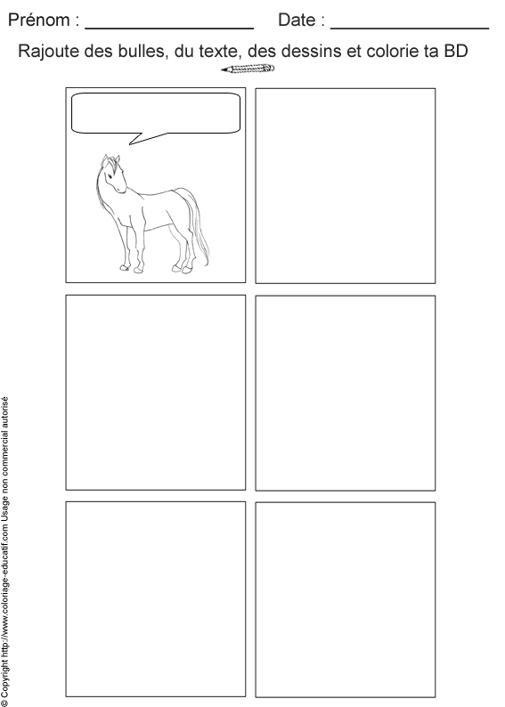 L'enfant devra rajouter les images, les bulles et les textes qui manquent afin de compléter la petite histoire.