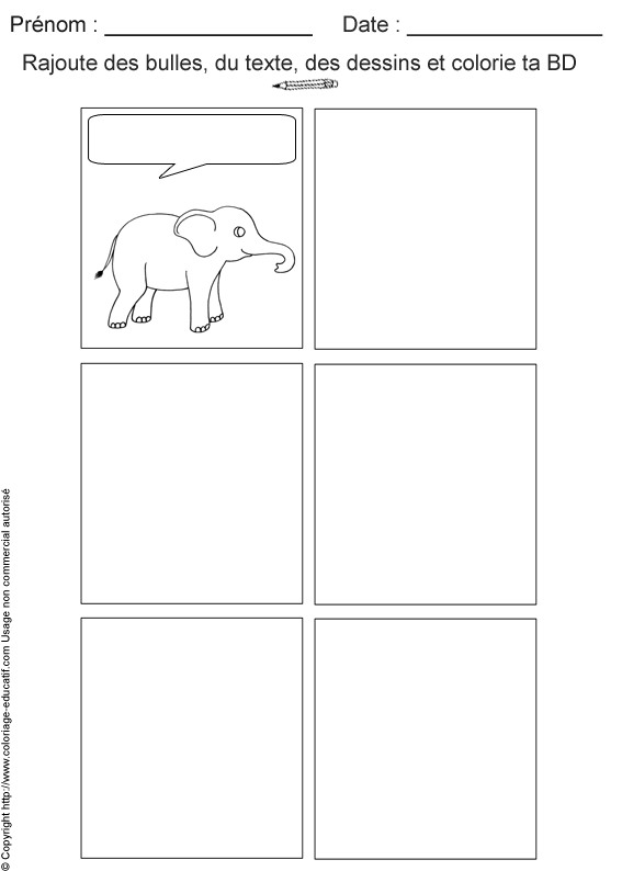 L'enfant devra rajouter les images, les bulles et les textes qui manquent afin de compléter la petite histoire.