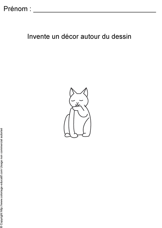 L'enfant doit imaginer un décor autour du chat et ensuite colorier son dessin.