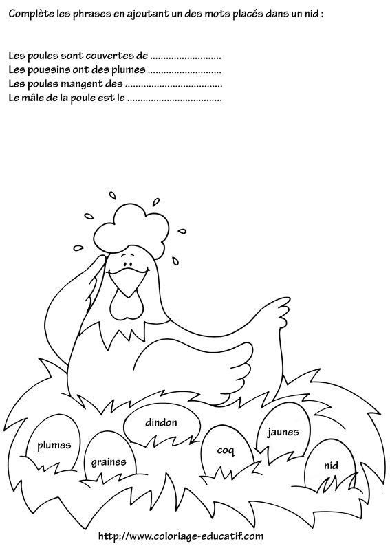 ![]() complète les phrases en ajoutant un des mots placés dans 1 nid |